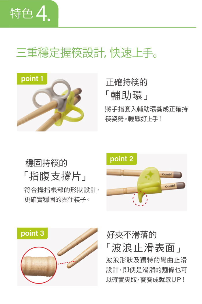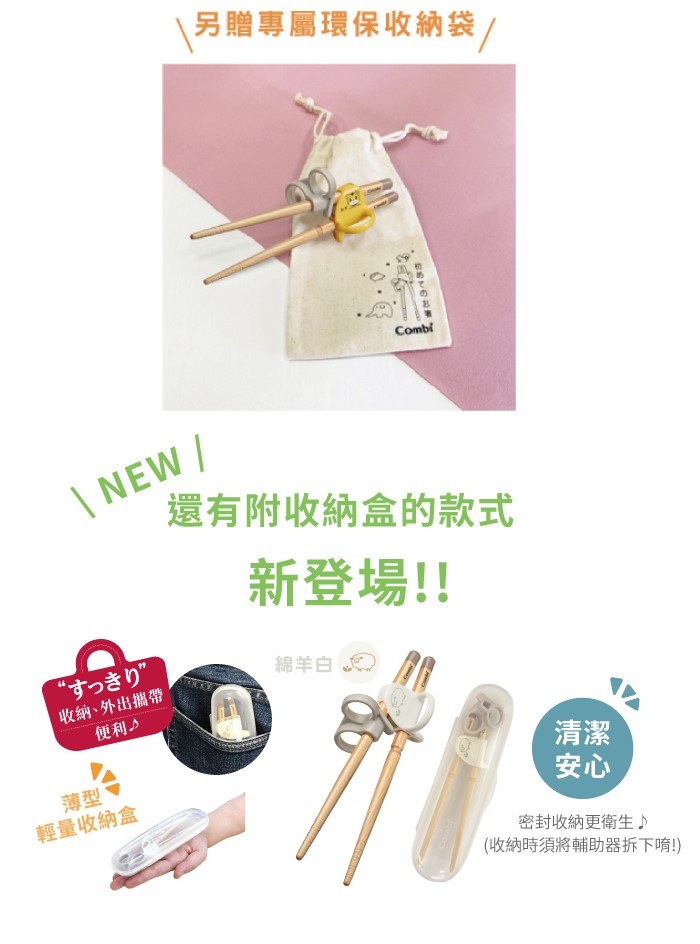 【Combi 康貝】木製三階段彈力學習筷(多款可選) 寶寶餐具 學習筷子 附環保收納袋|卡多摩
