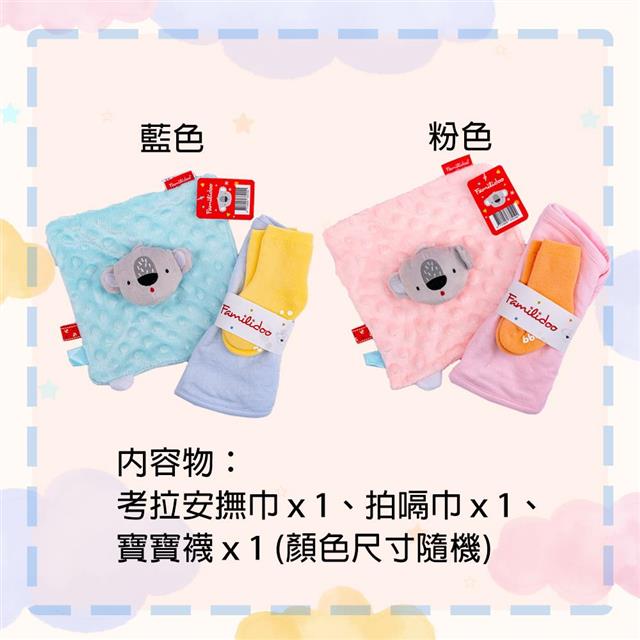 考拉禮品袋內容:考拉安撫巾*1、拍嗝巾*1、寶寶襪*1 (顏色尺寸隨機)