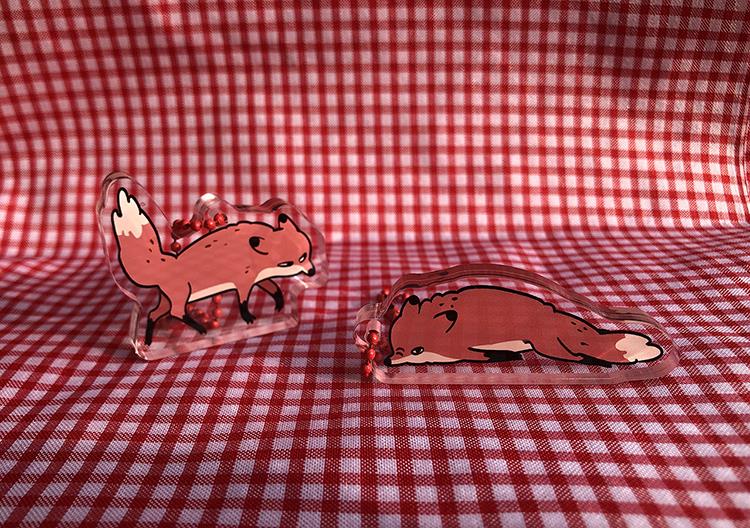 壓克力長寬皆約5cm,正反面為相同圖樣,附紅色珠鍊一條
