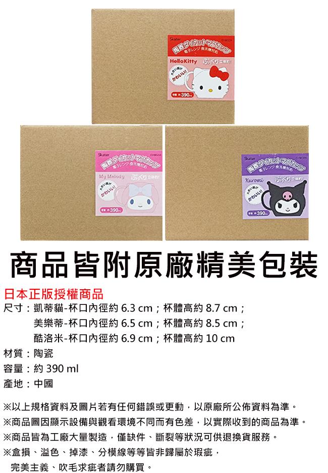 三麗鷗 陶瓷 馬克杯 390ml 咖啡杯 凱蒂貓 美樂蒂 酷洛米