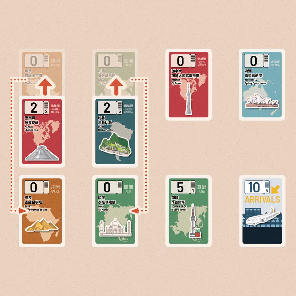 在每一段旅程中,您所造訪的景點若分布在越多不同的大洲上,便能獲得越高分。