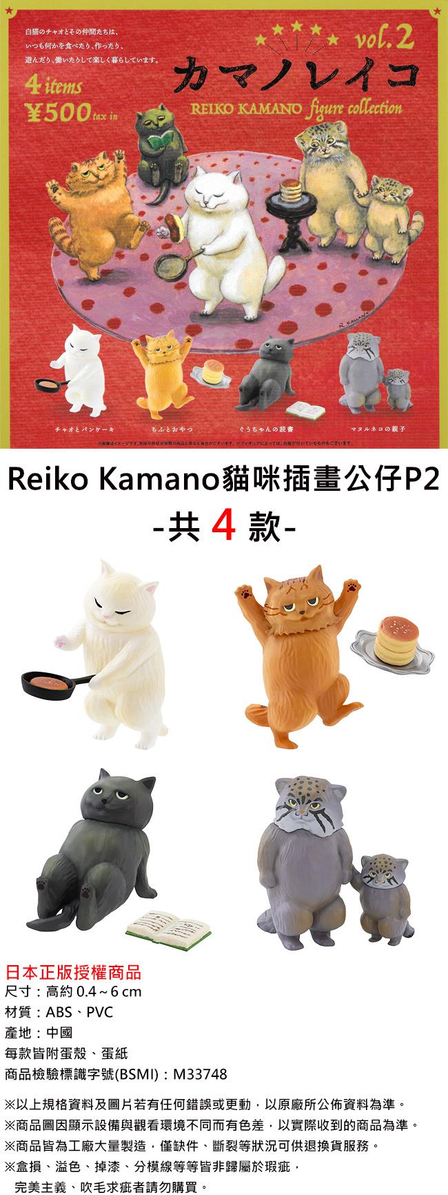 全套4款 Reiko Kamano 貓咪插畫公仔 P2 扭蛋 轉蛋 白貓 黑貓 動物模型
