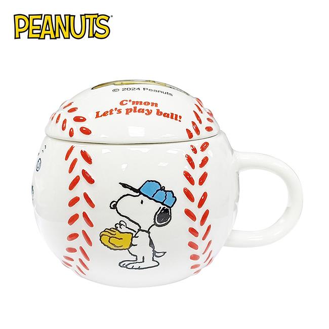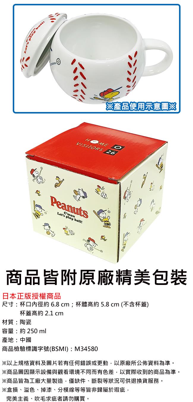 史努比 棒球造型 陶瓷 馬克杯 附蓋子 250ml 咖啡杯 Snoopy PEANUTS