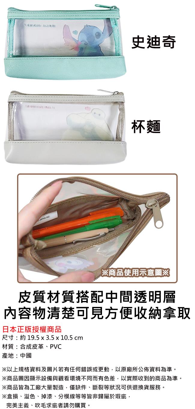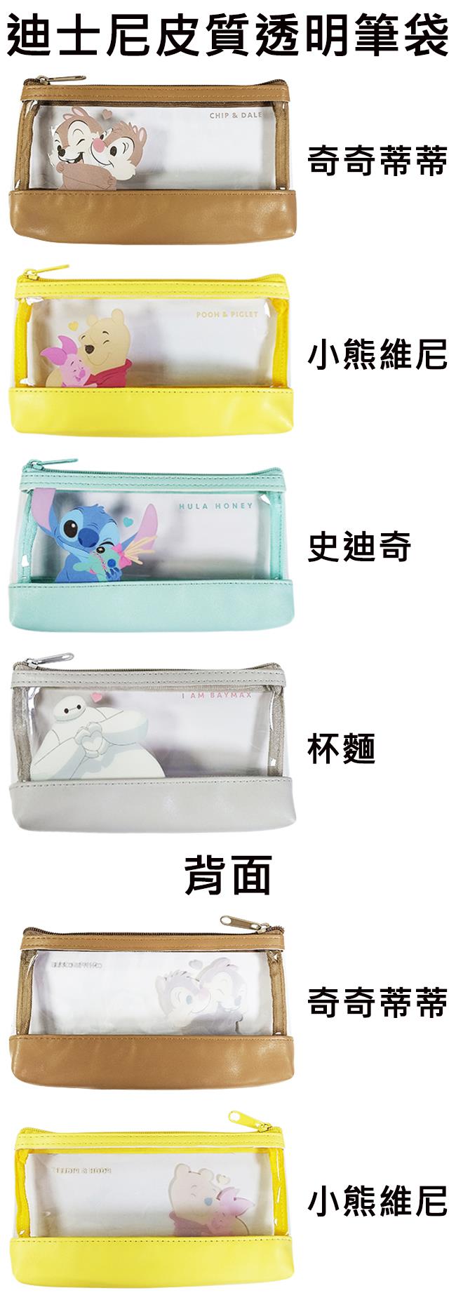 迪士尼 皮質 透明筆袋 鉛筆盒 筆袋 化妝包 收納包 奇奇蒂蒂 小熊維尼 史迪奇 杯麵