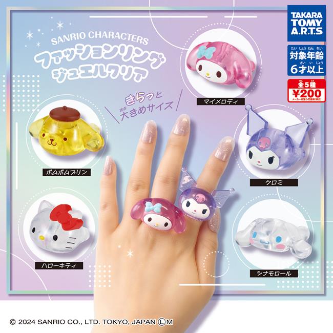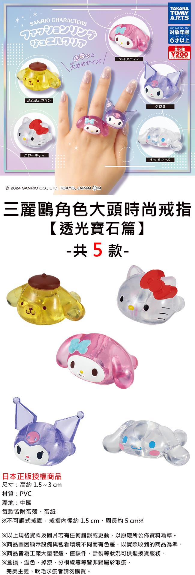全套5款 三麗鷗角色 大頭時尚戒指 透光寶石篇 扭蛋 轉蛋 凱蒂貓 布丁狗 酷洛米 大耳狗