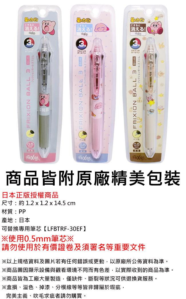 星之卡比 三色按鍵魔擦筆 0.5mm 日本製 擦擦原子筆 擦擦筆 極細魔擦筆 卡比之星 Kirby