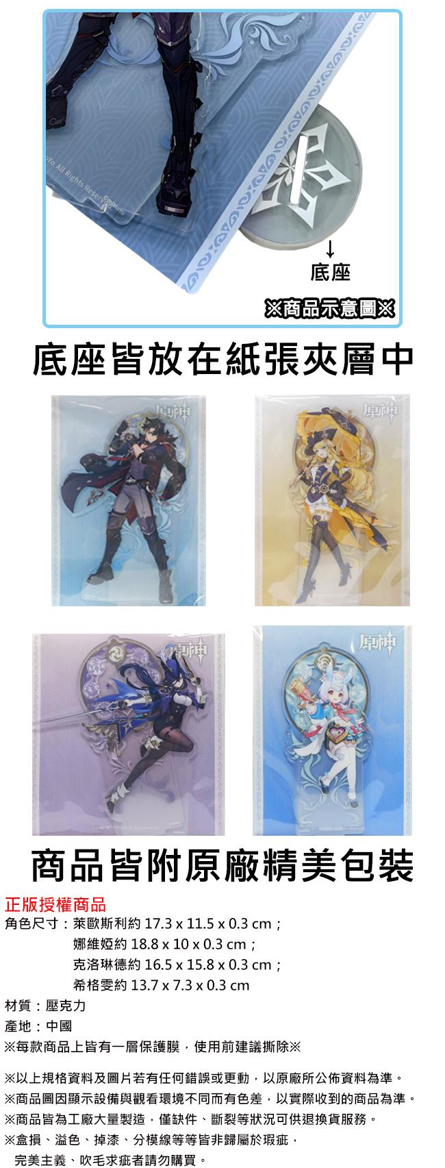 原神角色 燙金壓克力立牌 擺飾 立牌 桌上小物 萊歐斯利 娜維婭 克洛琳德 希格雯