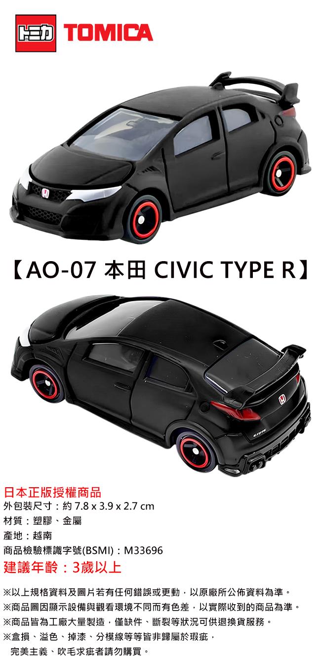 TOMICA 亞洲限定 AO-07 本田 CIVIC TYPE R Honda 喜美 玩具車