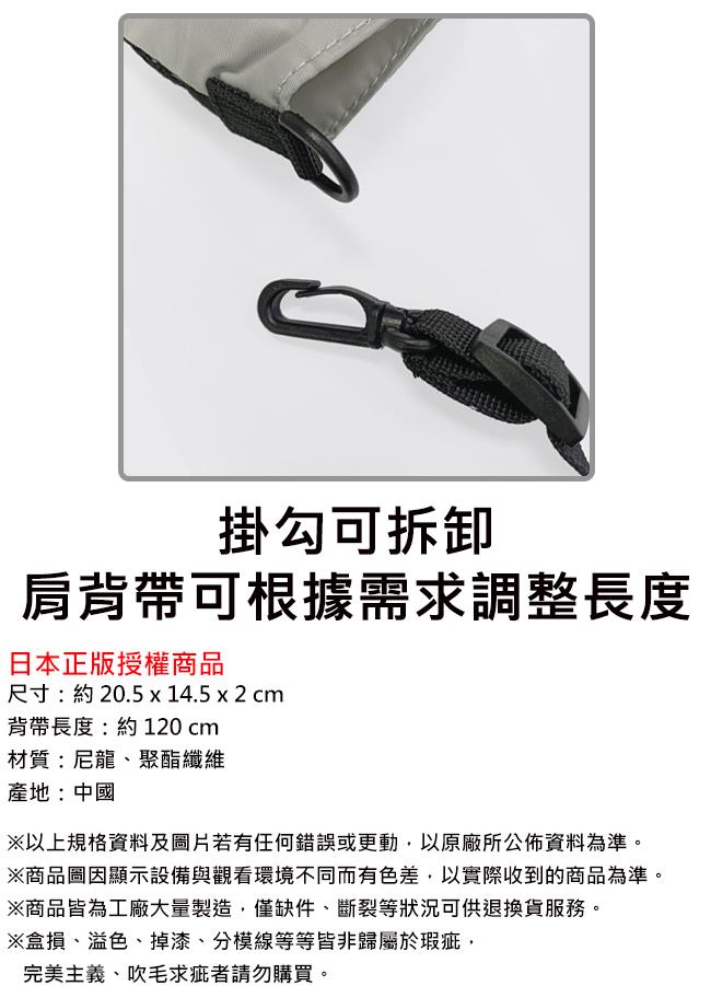能放置錢包、手機等物品<br> 適合側背、肩背 攜帶方便<br> 肩背帶可根據需求調整長度<br> 日本正版授權商品