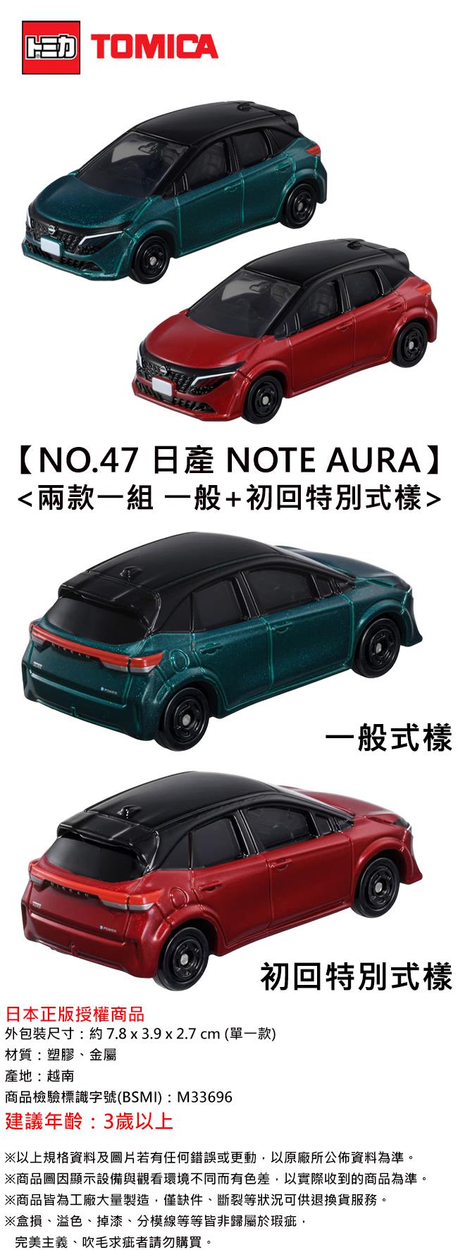 兩款一組 TOMICA NO.47 日產 NOTE AURA NISSAN 玩具車 多美小汽車