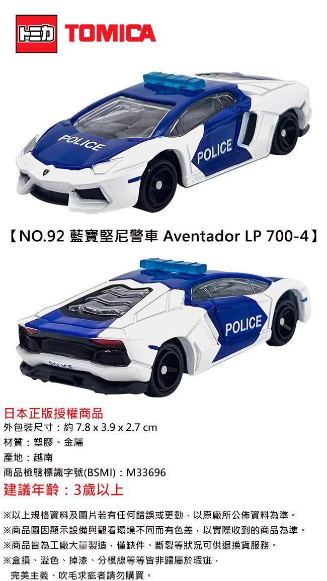 TOMICA 亞洲限定 NO.92 藍寶堅尼警車 Aventador LP 700-4 警車 跑車