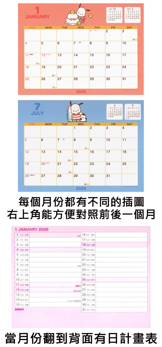 帕恰狗 2026桌曆 日本製 雙面桌曆 桌上型月曆 三角桌曆 行事曆 月曆 POCHACCO 三麗鷗