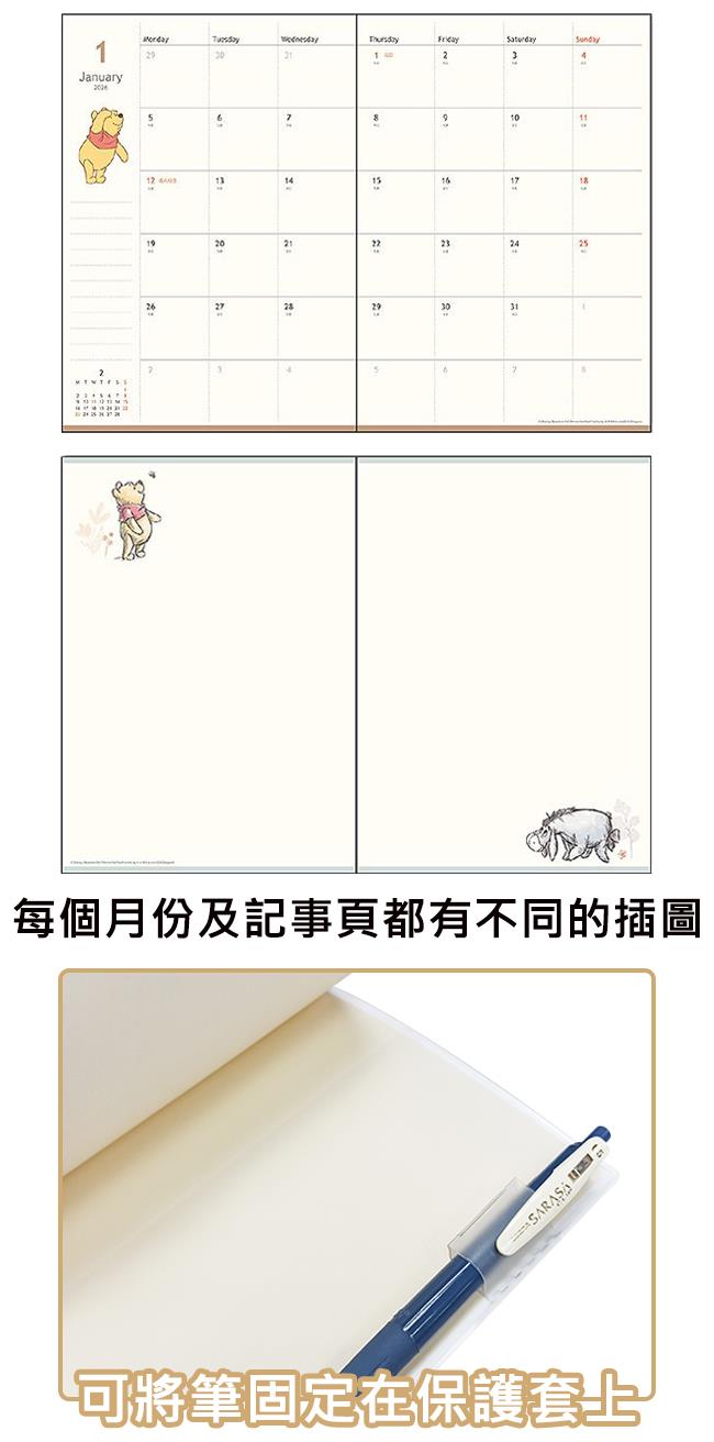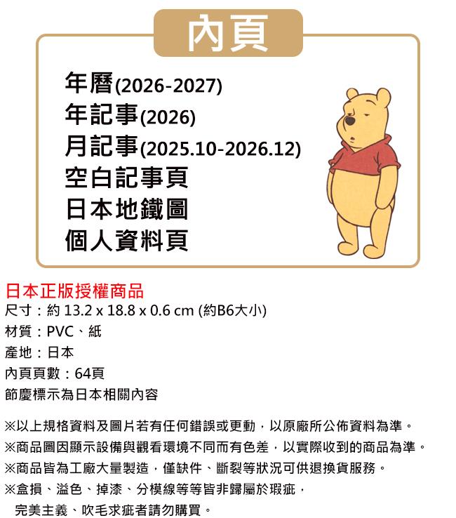小熊維尼 2026手帳本 日本製 B6手帳 月記事手帳 跨年手冊 記事本 行事曆 維尼 Winnie