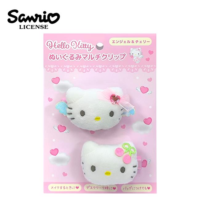 凱蒂貓 絨毛造型髮夾 2入組 髮夾 瀏海髮夾 Hello Kitty 三麗鷗 Sanrio