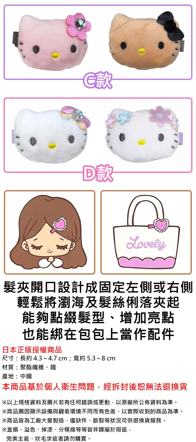 凱蒂貓 絨毛造型髮夾 2入組 髮夾 瀏海髮夾 Hello Kitty 三麗鷗 Sanrio