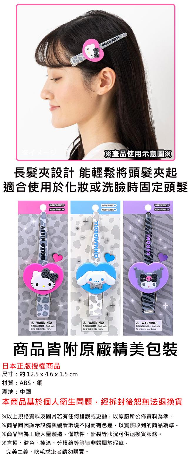 長髮夾設計<br> 能輕鬆將頭髮夾起<br> 適合使用於化妝或洗臉時固定頭髮<br> 日本正版授權商品
