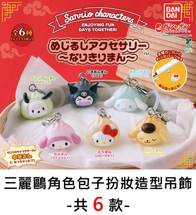 全套6款 三麗鷗角色 包子扮妝造型吊飾 扭蛋 轉蛋 帕恰狗 酷洛米 大耳狗 美樂蒂 凱蒂貓 布丁狗