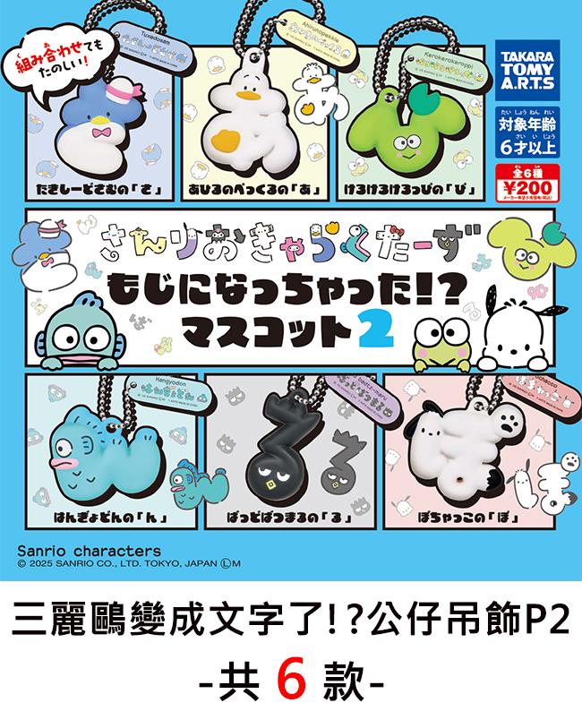 全套6款 三麗鷗變成文字了!? 公仔吊飾 P2 扭蛋 轉蛋 山姆企鵝 貝克鴨 大眼蛙 人魚漢頓