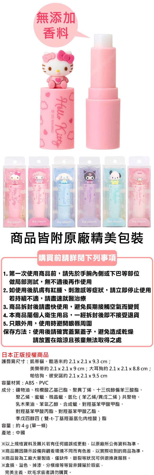 三麗鷗 護唇膏 4g 潤唇膏 凱蒂貓 美樂蒂 大耳狗 酷洛米 帕恰狗 彼安諾