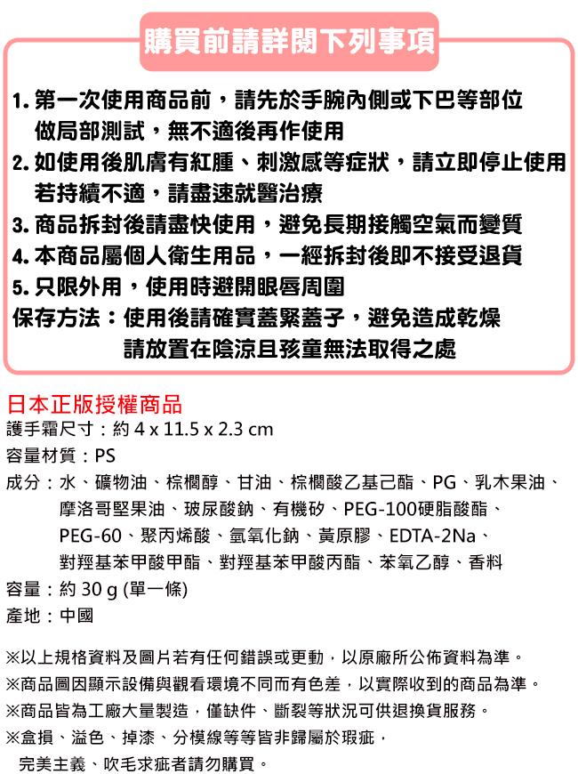 添加乳木果油、摩洛哥堅果油成分<br> 提供手部保濕及潤澤度<br> 每個人物對應不同的香氛<br> 日本正版授權商品