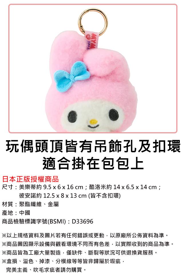 採用絨毛材質觸感舒適<br> 能作為鑰匙圈、吊飾使用<br> 日本正版授權商品