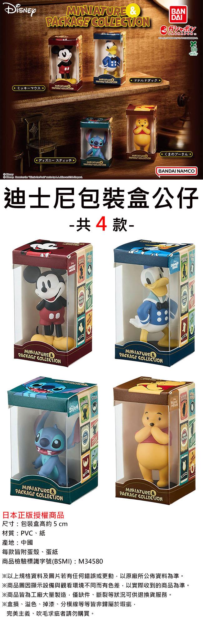 全套4款 迪士尼 包裝盒公仔 扭蛋 轉蛋 米奇 唐老鴨 史迪奇 小熊維尼 BANDAI 萬代