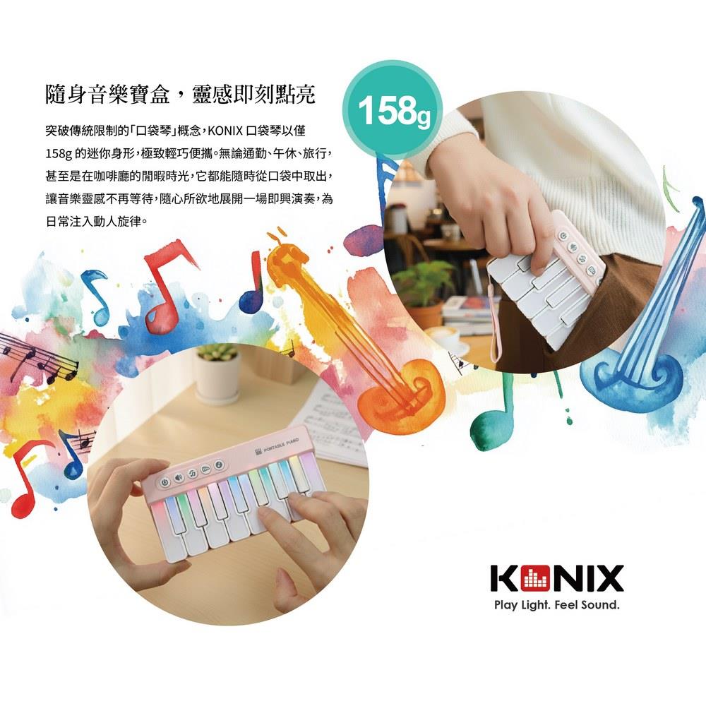 【KONIX】 掌上口袋琴 K8047-白色 迷你電子琴 學習電子琴 兒童音樂玩具 七彩燈光琴