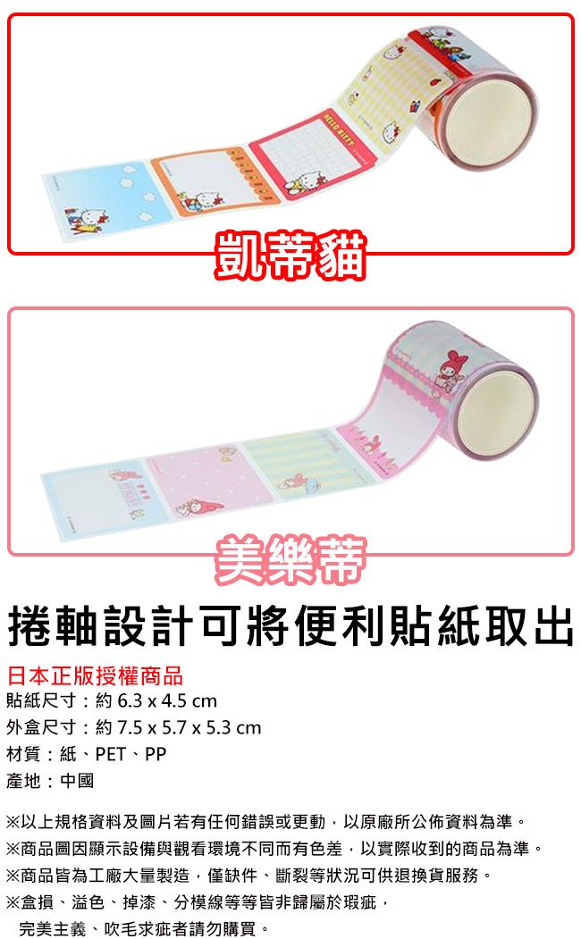 三麗鷗 盒裝捲軸便利貼紙 貼紙 手帳貼 裝飾貼紙 捲軸貼紙 便利貼 凱蒂貓 美樂蒂