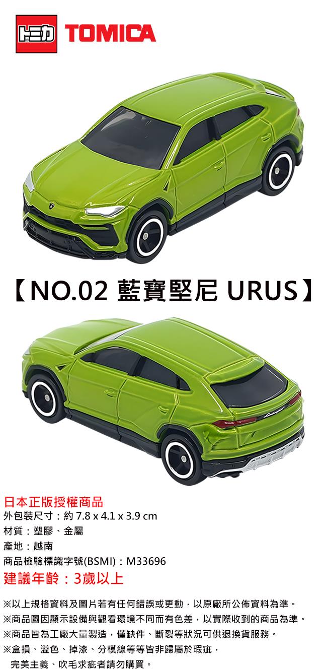 TOMICA 亞洲限定 NO.02 藍寶堅尼 URUS 休旅車 玩具車 多美小汽車