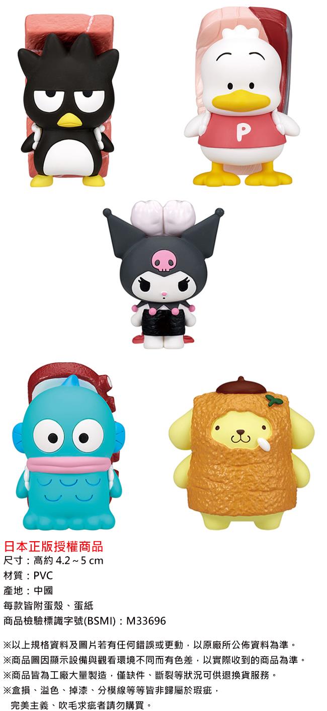 全套5款 三麗鷗角色 壽司公仔 P2 扭蛋 轉蛋 酷企鵝 帕恰狗 酷洛米 人魚漢頓 布丁狗