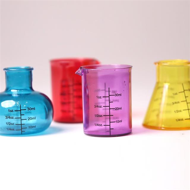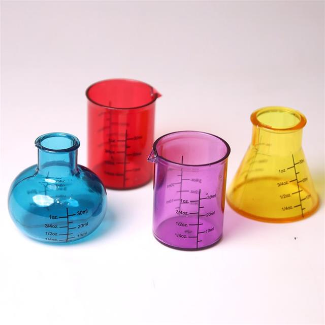 ✔ 三角瓶(黃)✔ 球形燒瓶(藍)✔ 圓柱量杯(紫)✔ 直筒燒杯(紅)