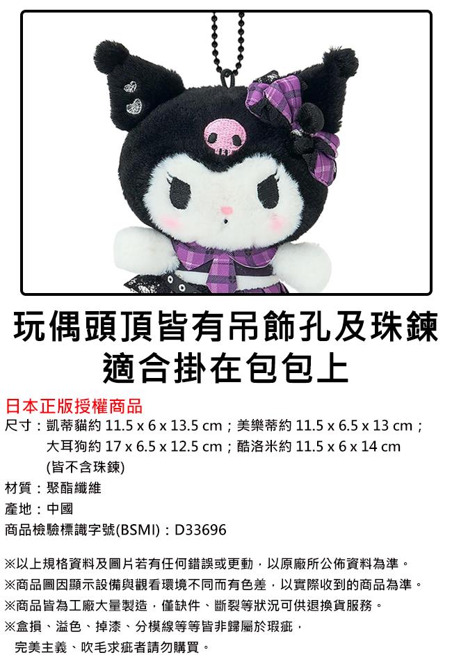 三麗鷗 少女搖滾系列 玩偶吊飾 吊飾 娃娃 絨毛玩偶 凱蒂貓 美樂蒂 大耳狗 酷洛米