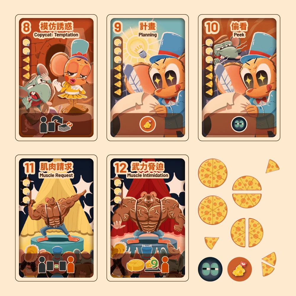 猜中紙牌編號來獲得起司,再運用紙牌行動獲得更多起司,