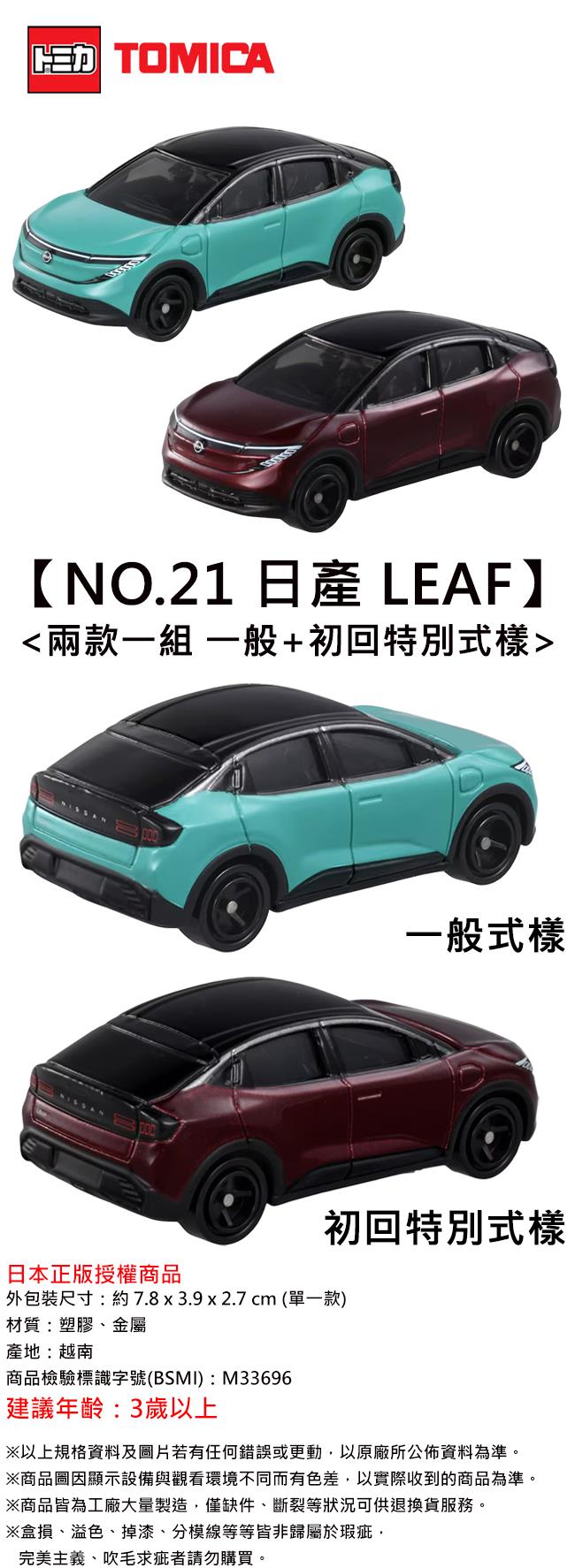 兩款一組 TOMICA NO.21 日產 LEAF NISSAN 玩具車 多美小汽車