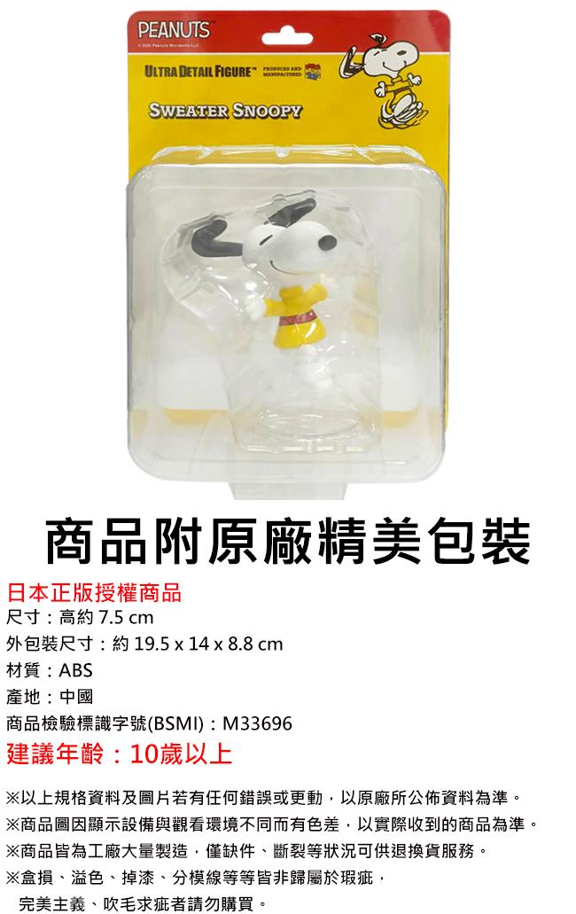 UDF 史努比 吊卡系列 NO.847 毛衣史努比 公仔 模型 7.5cm Snoopy