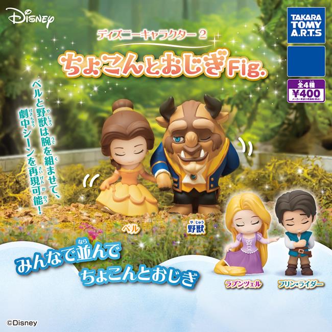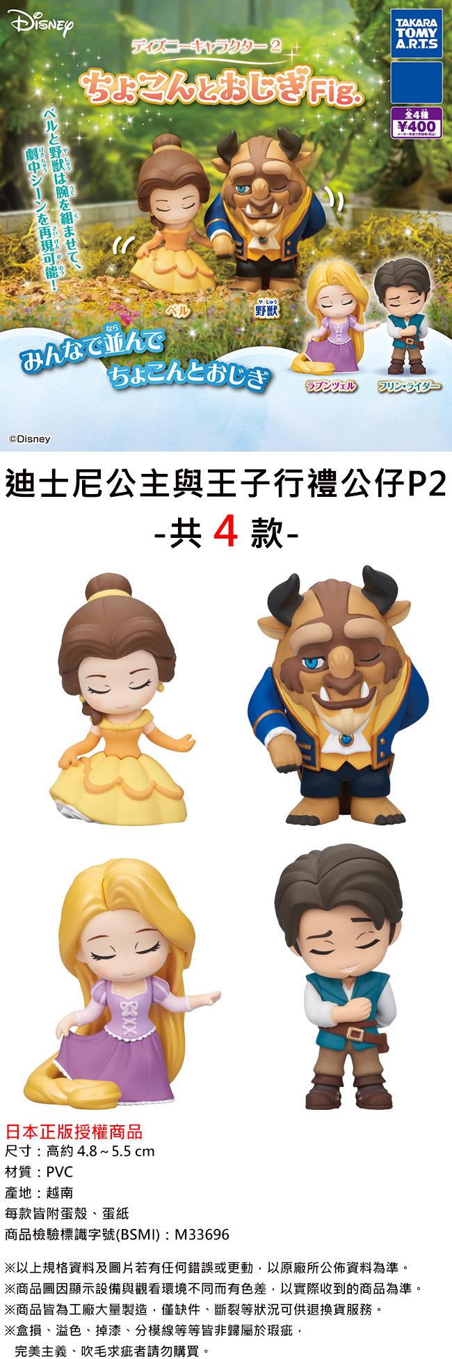 全套4款 迪士尼公主與王子 行禮公仔 P2 扭蛋 轉蛋 鞠躬公仔 貝兒公主 野獸 樂佩公主 尤金