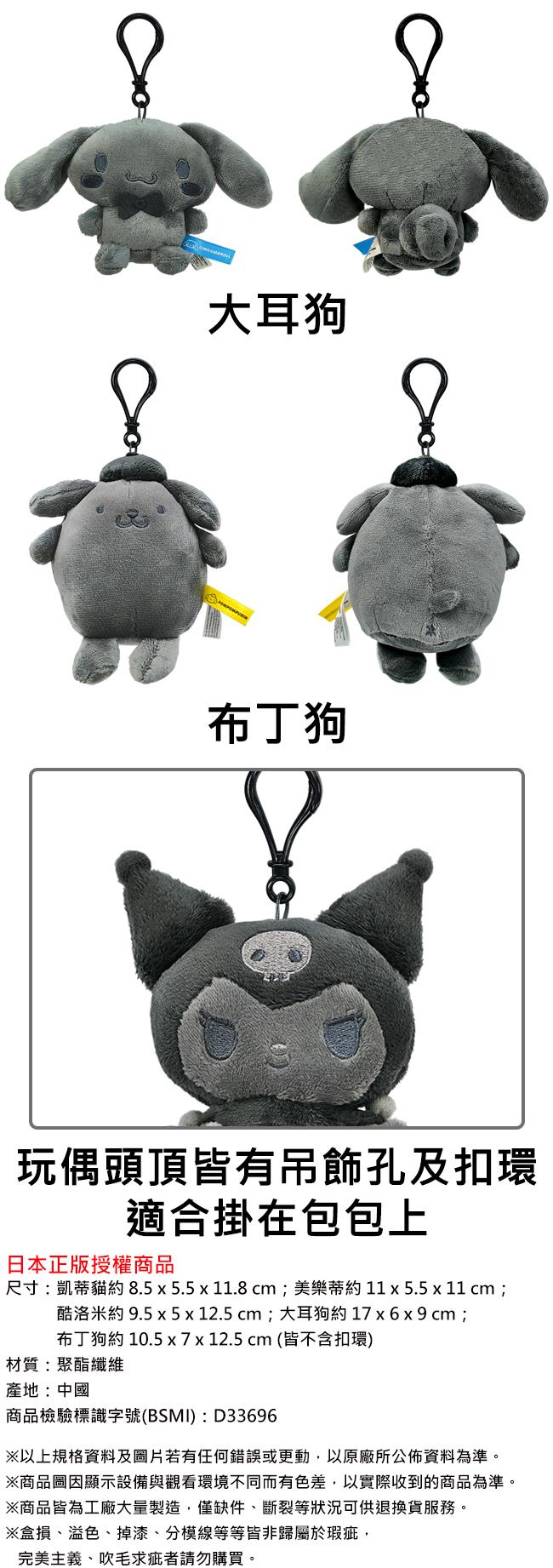 三麗鷗 灰燼色系列 玩偶吊飾 吊飾 娃娃 絨毛玩偶 凱蒂貓 美樂蒂 酷洛米 大耳狗 布丁狗
