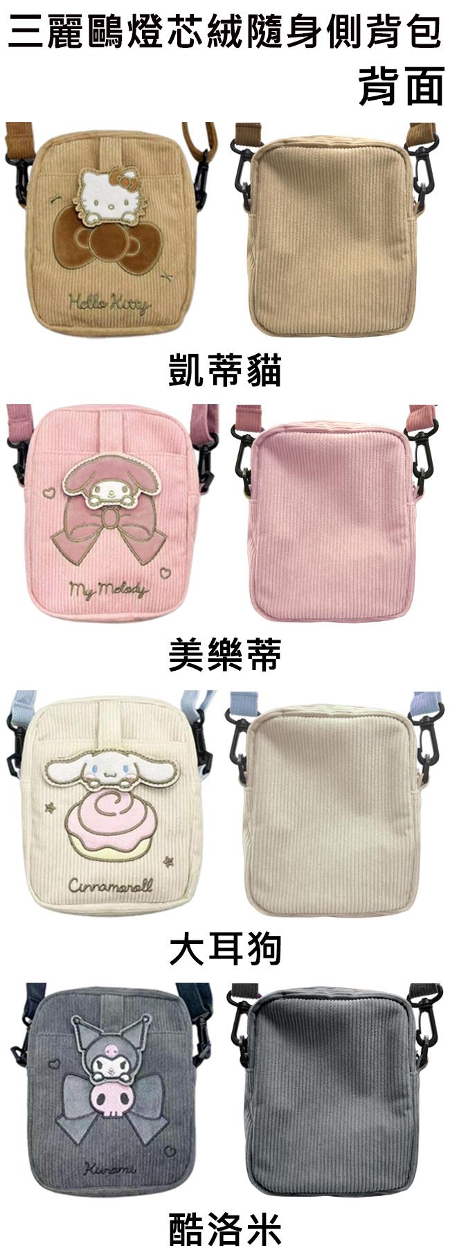 三麗鷗 燈芯絨 隨身側背包 斜背包 側背包 隨身小包 凱蒂貓 美樂蒂 大耳狗 酷洛米