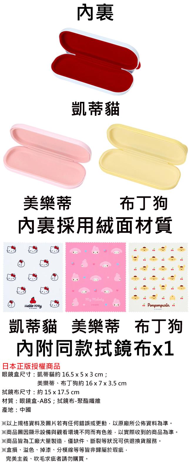 三麗鷗 造型眼鏡盒 附拭鏡布 眼鏡收納盒 眼鏡盒 凱蒂貓 美樂蒂 布丁狗