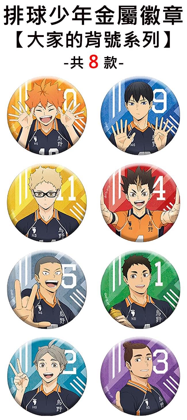 兩入一組 排球少年 大家的背號系列 金屬徽章 日本製 別針 胸章日向翔陽 影山飛雄 月島螢 西谷夕