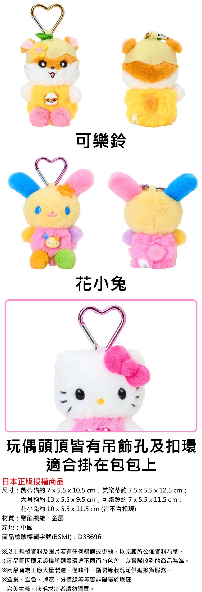 三麗鷗 平成風系列 玩偶吊飾 吊飾 娃娃 絨毛玩偶 凱蒂貓 美樂蒂 大耳狗 可樂鈴 花小兔