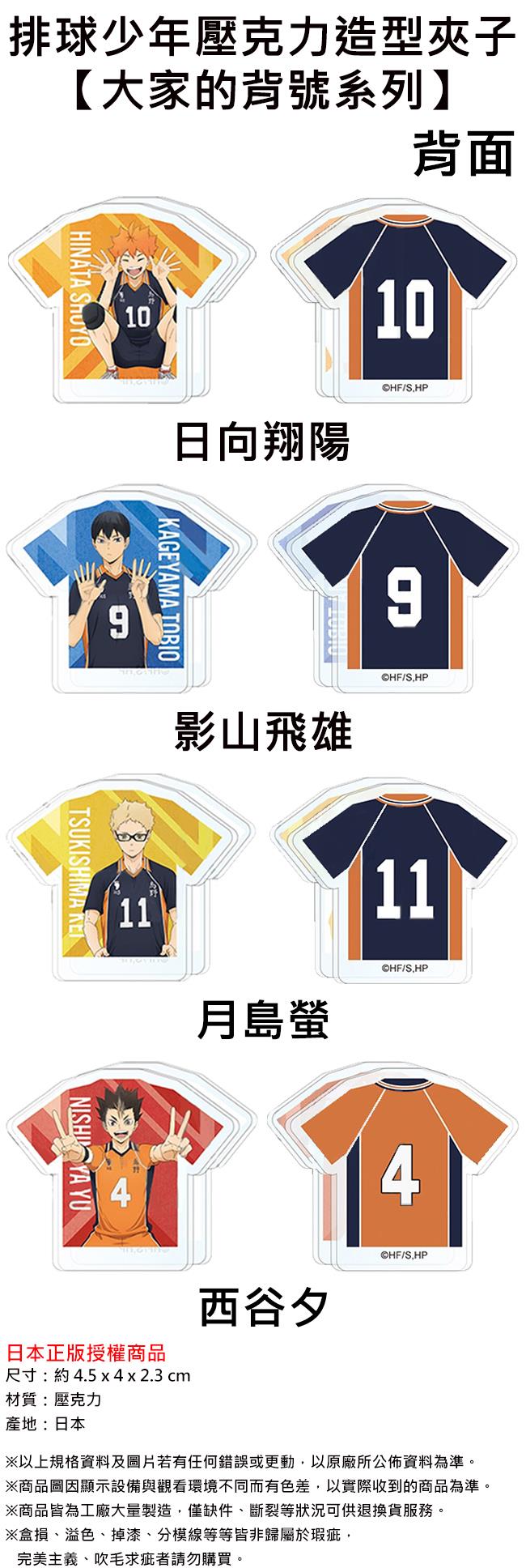 排球少年 大家的背號系列 壓克力造型夾子 夾子 書夾 文具夾 固定夾 烏野高中 日向翔陽 影山飛雄