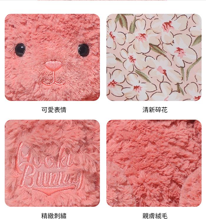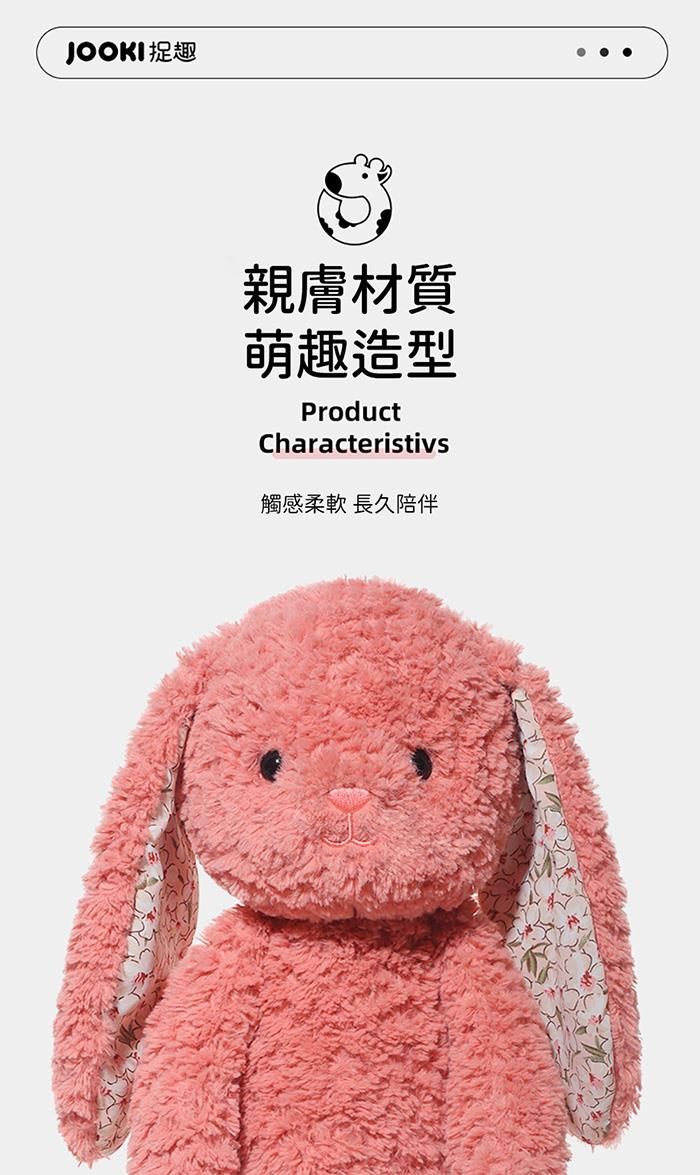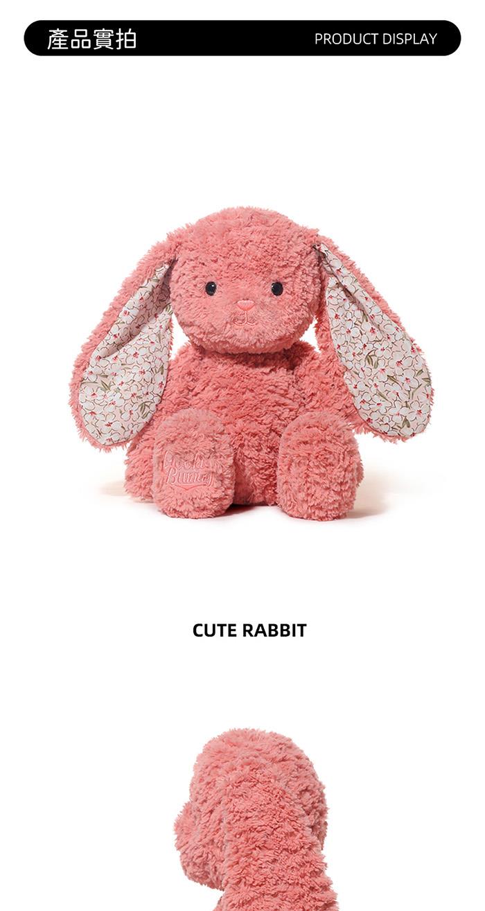 一眼就被這隻可愛的絨毛兔子玩偶深深吸引! 看那毛絨絨的耳朵,內側還巧妙地融入了花朵圖案, 彷彿春天就在它的耳邊綻放。