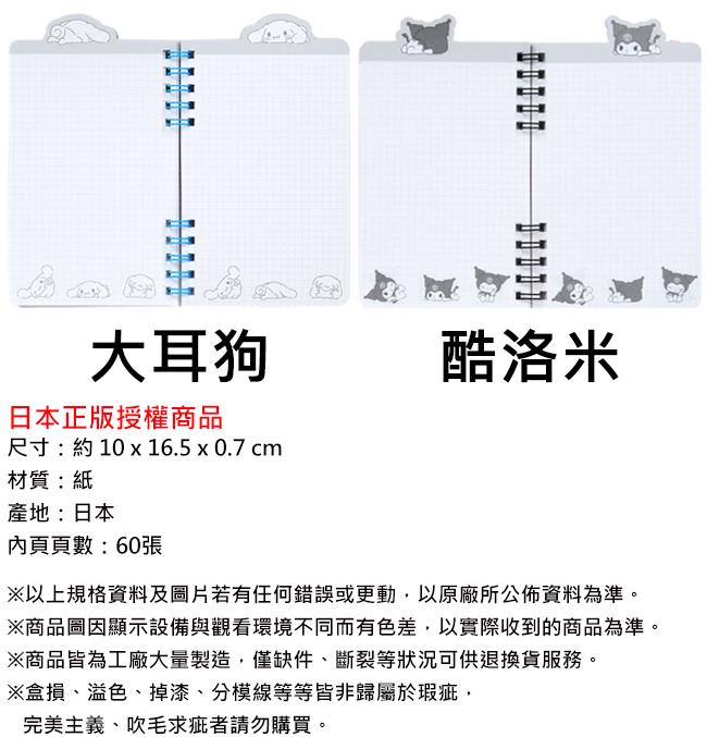 三麗鷗 方格筆記本 日本製 定頁筆記本 固頁筆記本 筆記本 記事本 凱蒂貓 美樂蒂 布丁狗 大耳狗