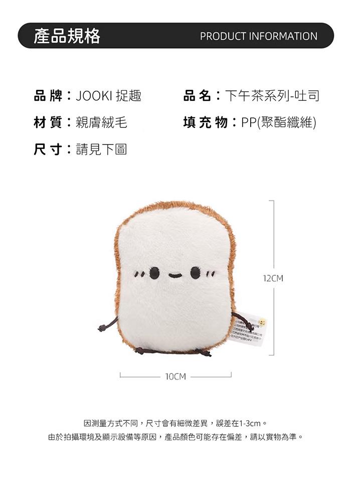 【JOOKI 捉趣】精品娃娃玩偶 下午茶系列-吐司吊飾(10*12cm)【贈品牌束口袋】