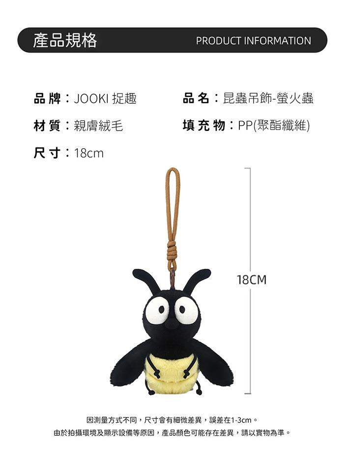 【JOOKI 捉趣】精品娃娃玩偶 昆蟲系列-螢火蟲吊飾(18cm)【贈品牌束口袋】