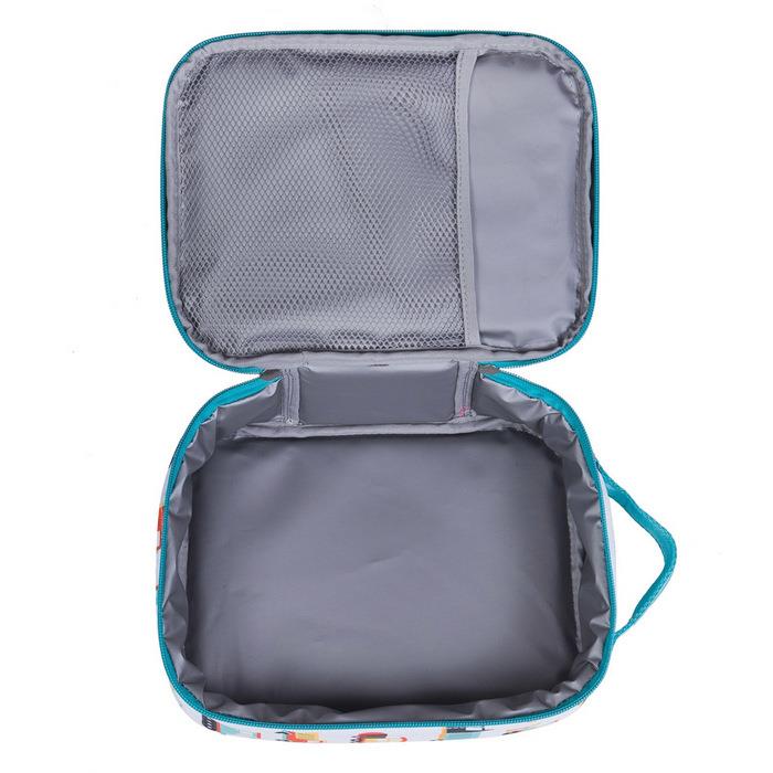 雙拉鍊開合的設計讓小手可以輕鬆取用他們喜愛的物品,耐用的頂部手柄非常適合在午餐前後掛在桌邊或椅子上!