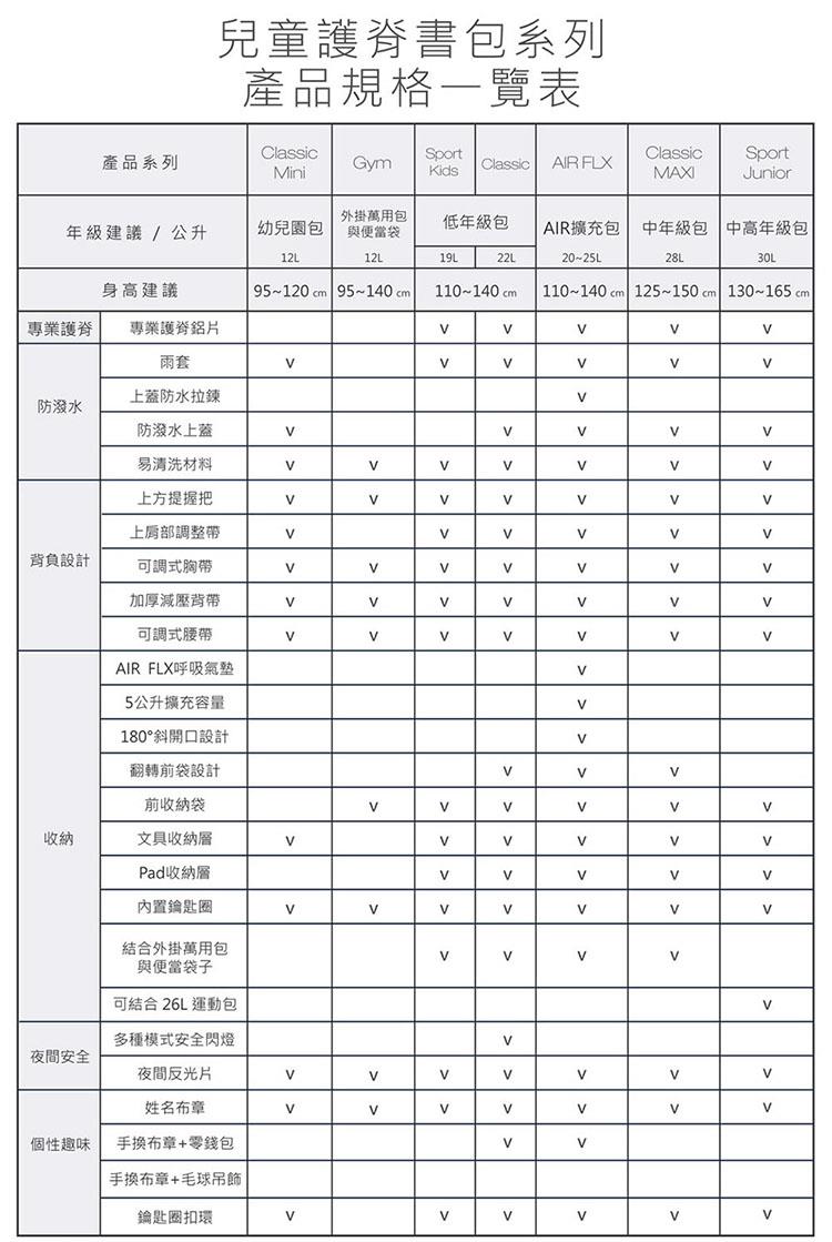 內置護脊鋁片,有效轉移書包重量,適合孩子貼身背負 採用防潑水材質製成,同時內附專用防雨套/貼心反光設計,上學更加安全,分層收納大空間/專利支