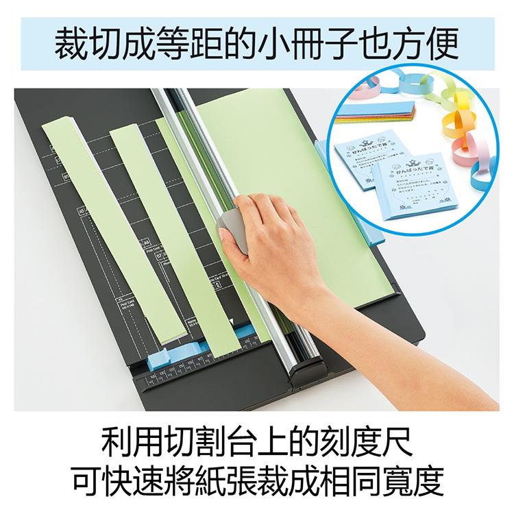 3. 長條裁切也簡單!只要平移調整量尺,對照裁出所需要等寬紙條。
