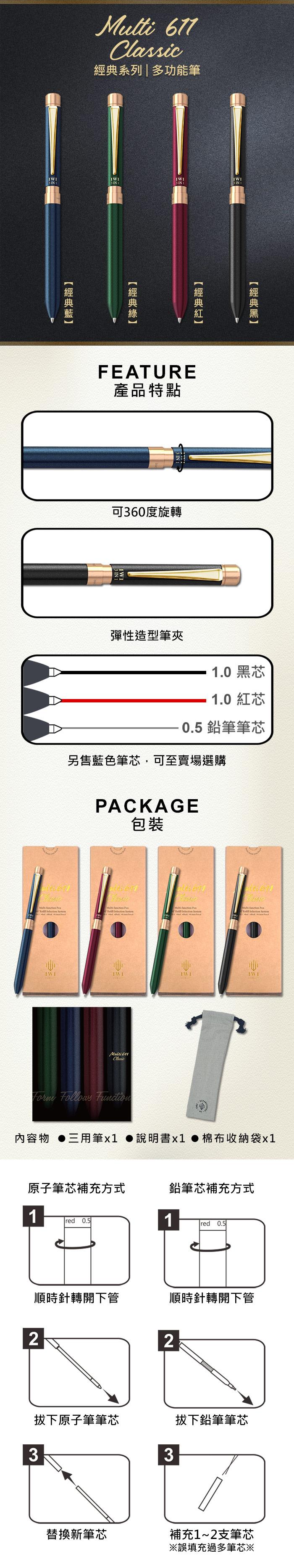 【IWI】經典系列- Multi 611系列3 in 1多功能筆-經典黑